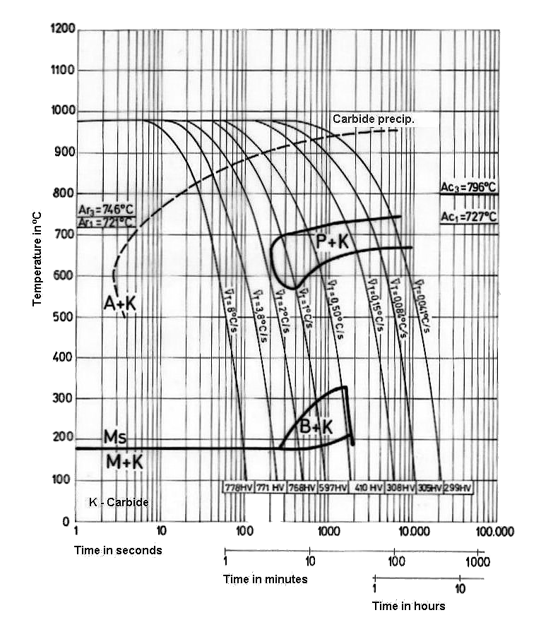 1.2080 Tool Steel Continuous Cooling Transformation (CCT) Diagram