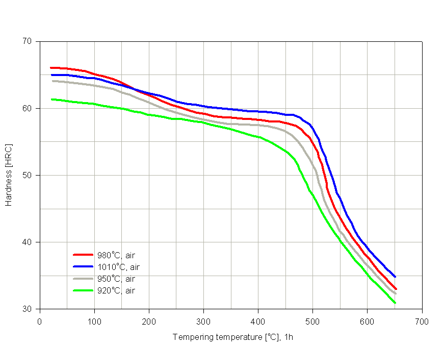 Tempering Temperature (°C) vs. Hardness (HRC)