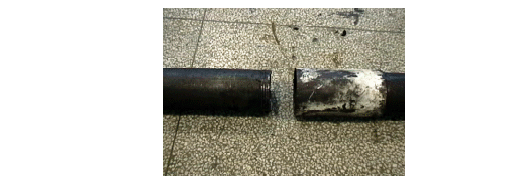 Figure 8 indicates the appearance of casing connection after four makeup and four breakout on makeup and breakout experiment machine. Figure 9 indicates the relationship among turns, torque, and rotate speed during makeup. If makeup and breakout integrity of product can be satisfied, maximal interference value on sealing face and control value of makeup and breakout torque will be confirmed by experiment. Then, the experiment of sealing integrity is carried out. Satisfying the request of sealing performance under high gas pressure is the one of primary properties of premium thread connection. The minimal interference quantity on sealing face is confirmed by gas sealing experiment. The gas sealing experiment pressure must achieve 90 percent of inside pipe yield strength. Finally, experiment of structure integrity is completed. Figure 10 shows tension failure. From failure position in the picture we know that failure is rupture breakage but not thread-off. Moreover, in this experiment, the connection tension failure strength exceeds 22.7 percent of API recommended, which verifies structure integrity of thread connection.
