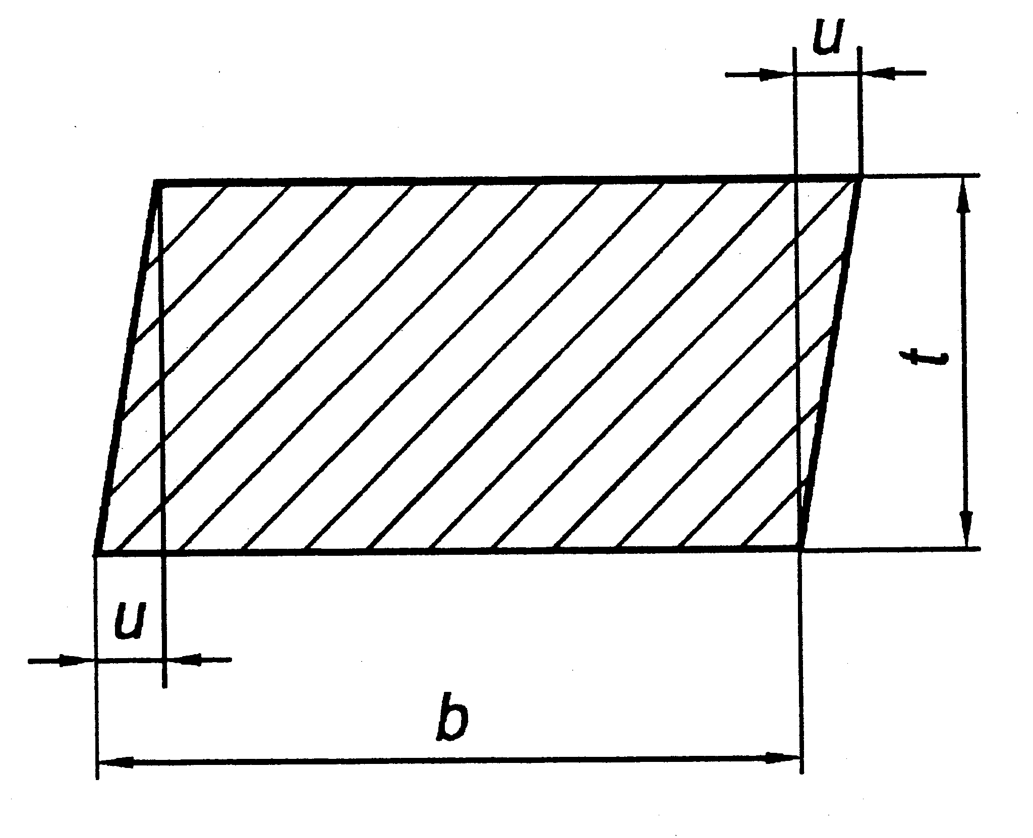 Out-of-section tolerance, u, applies to both nominal width, b and nominal thickness, t.