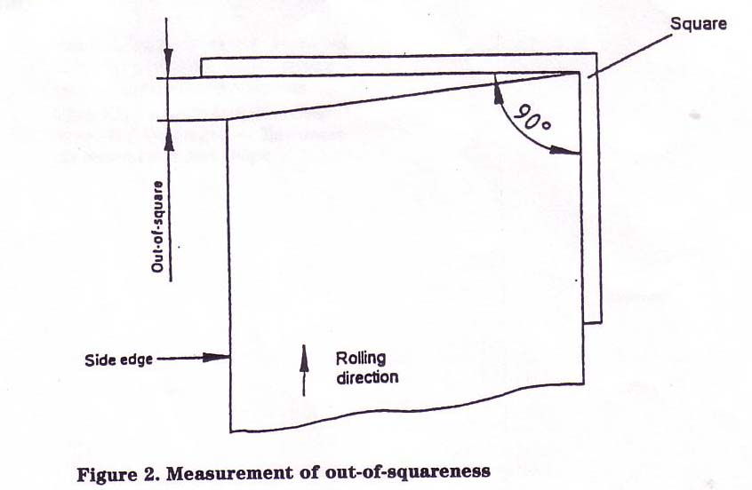 The out of squareness of cut lengths in widths of 250mm and above shall not exceed 0.5% of the actual width of the product.